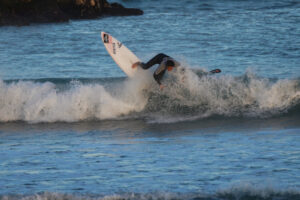 台風でサイズアップした波のサーフィン
