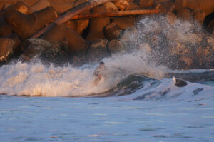 台風でサイズアップした波のサーフィン