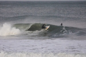 台風でサイズアップした波のサーフィン