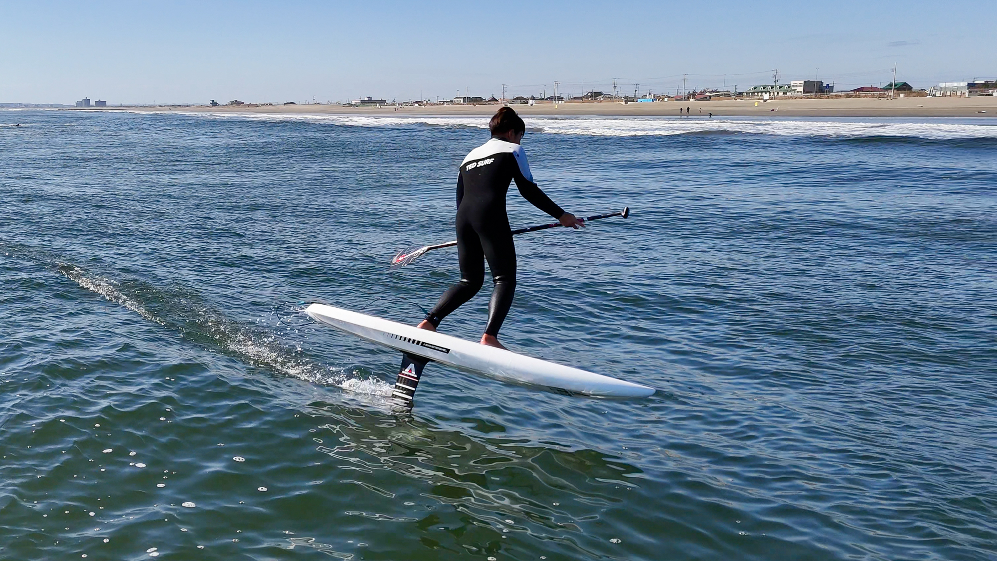 朝サップフォイルで海に入りました!うねりも弱く沖で割れているのでTHE FOIL WAVEって感じ。