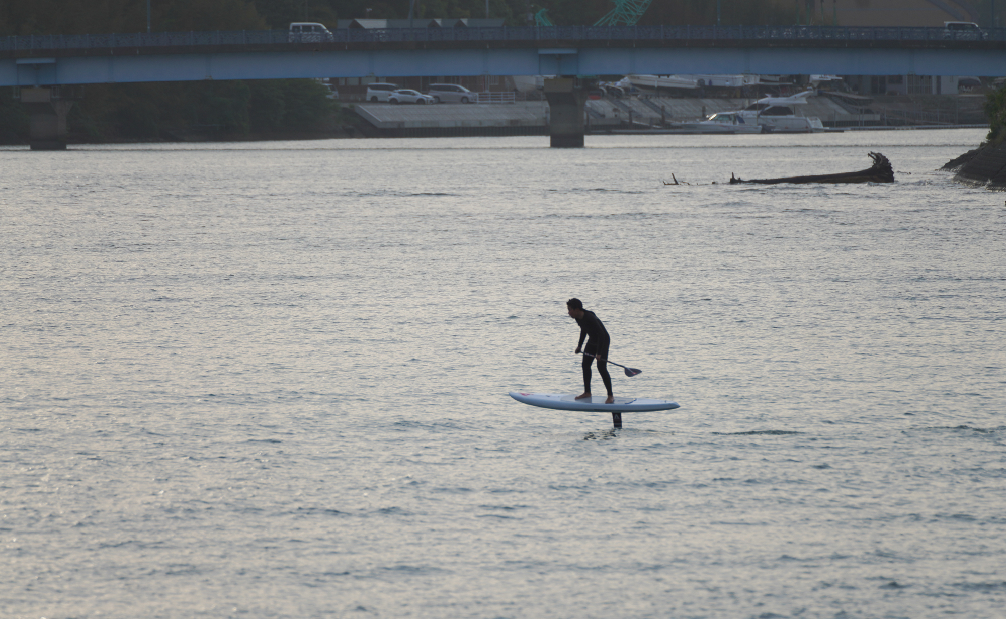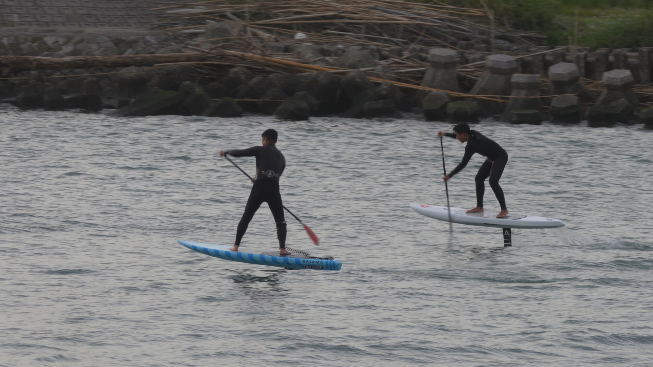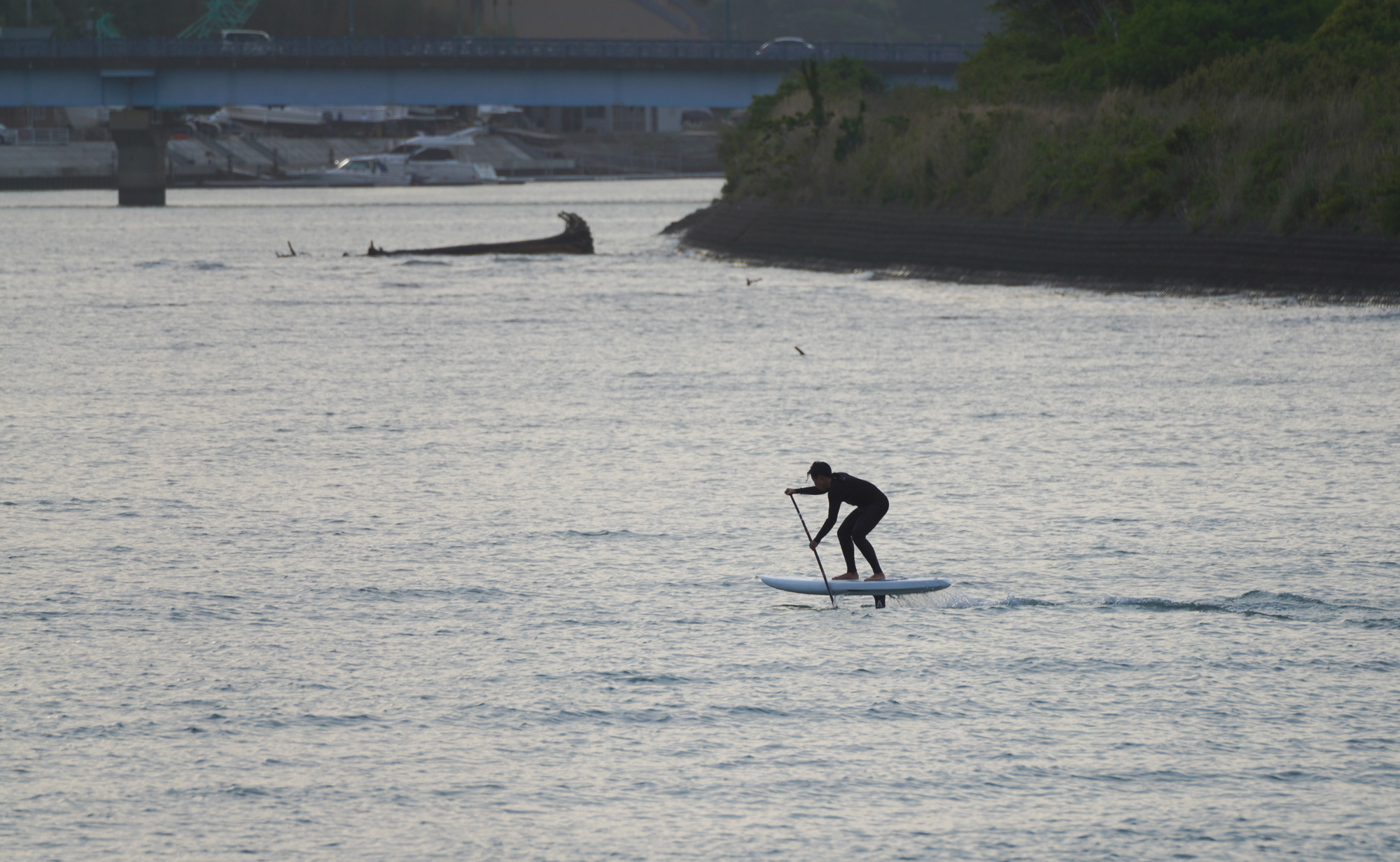 河口でフラットウオター練習をしてからSUPサーフィン。