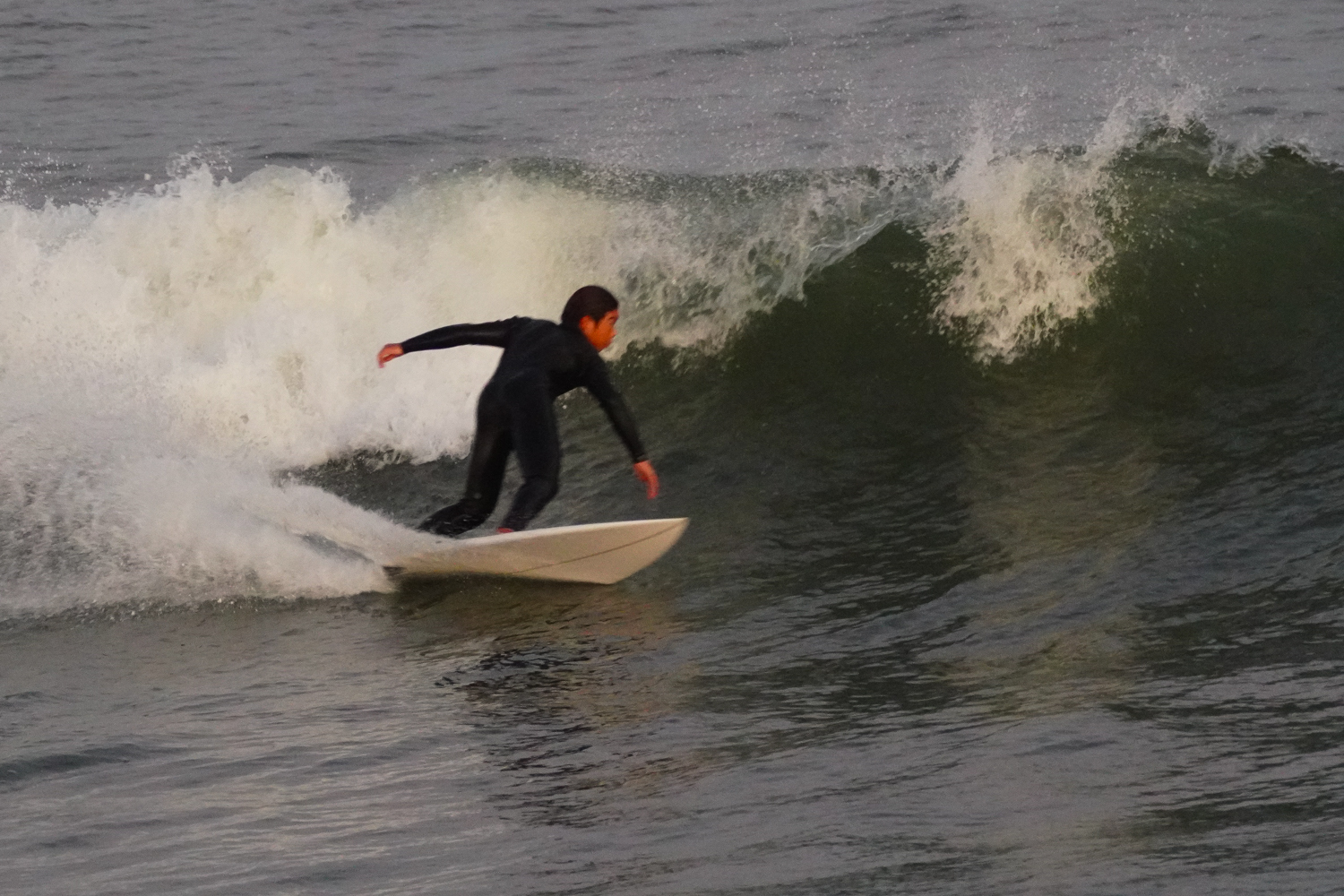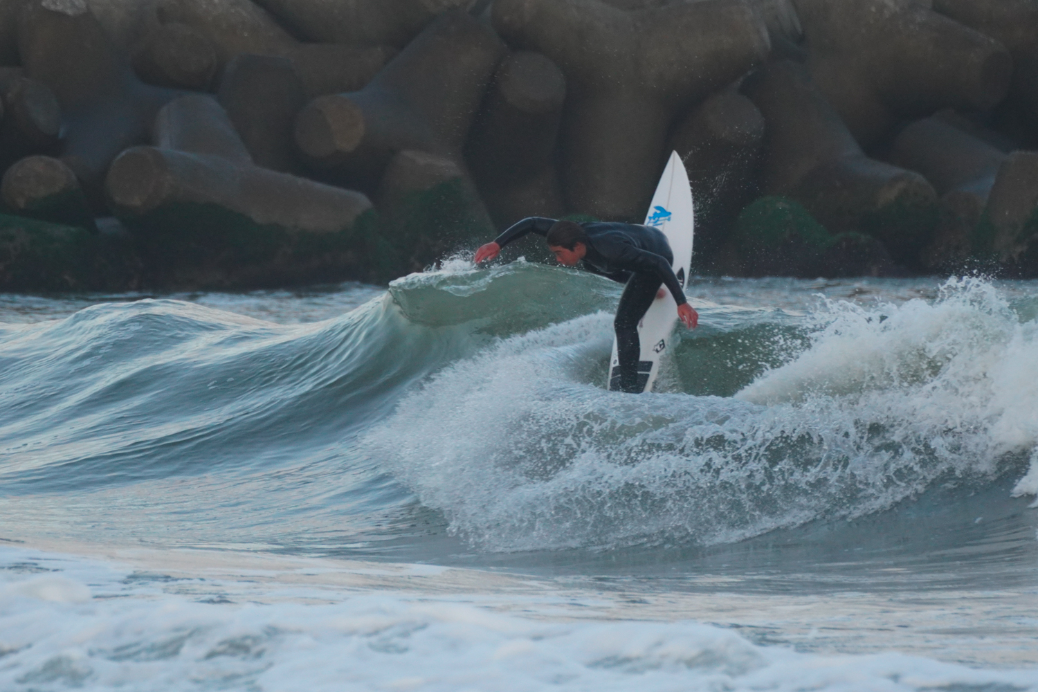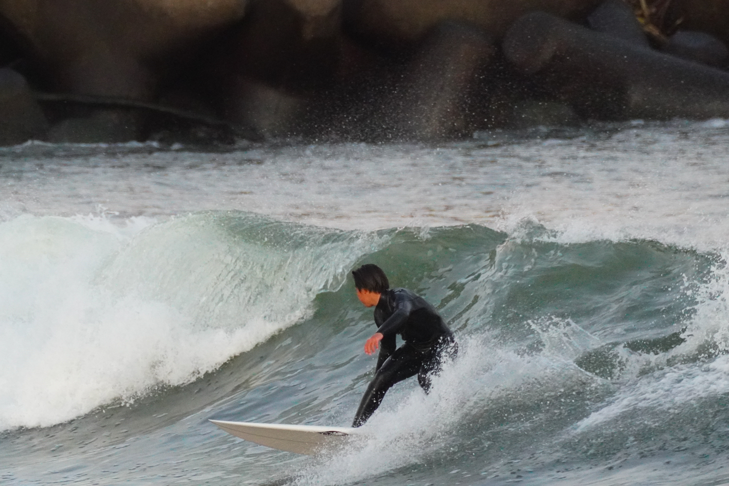 台風でサイズアップした波のサーフィン